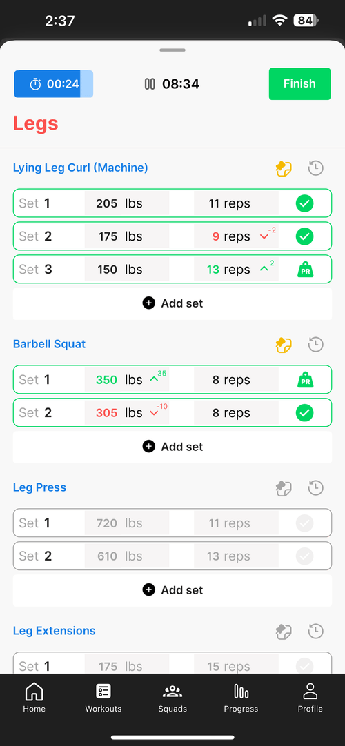 Track Progressive Overload, PRs, etc directly in your own personal progress tab.