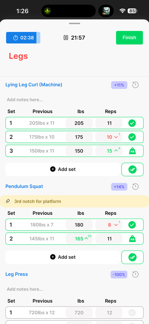 Track Progressive Overload, PRs, etc directly in your own personal progress tab.