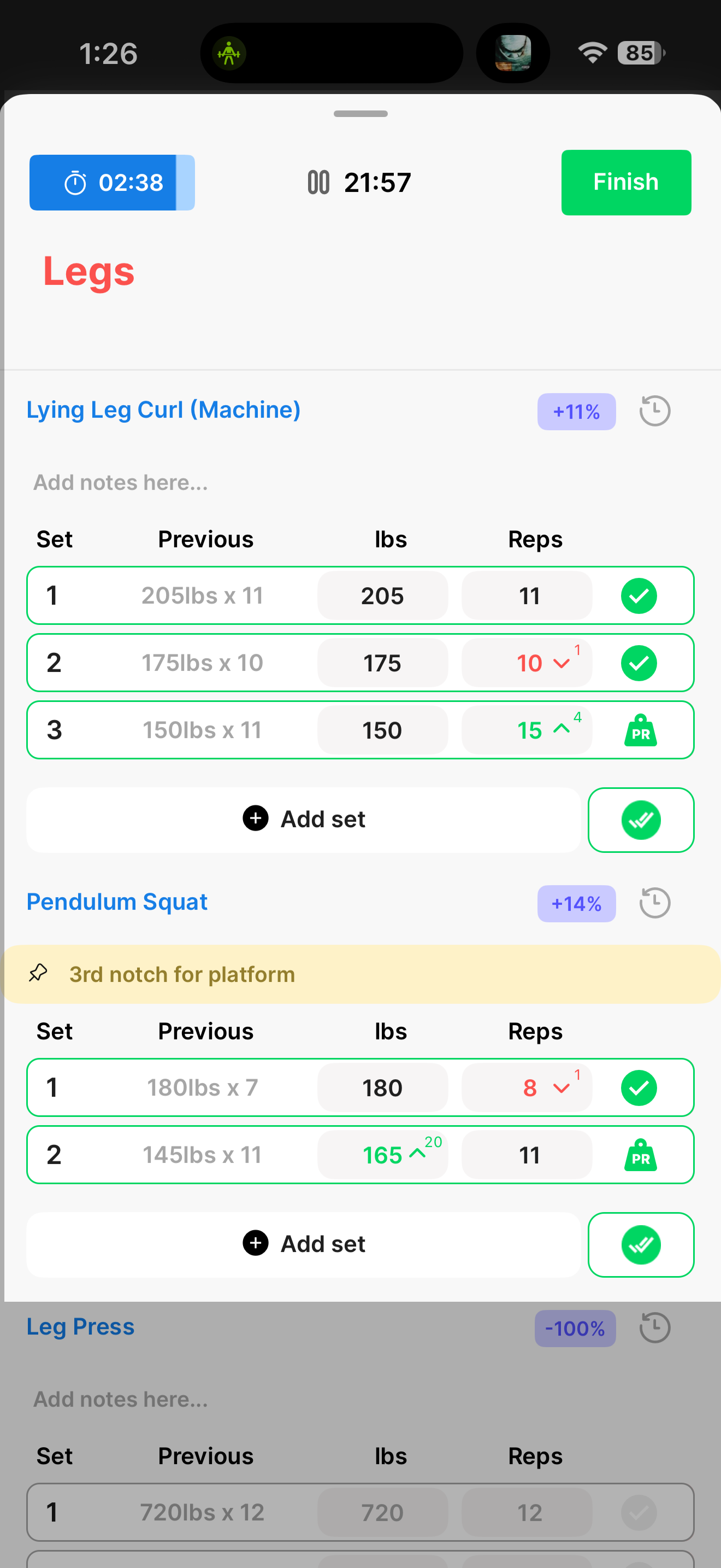 Track Progressive Overload, PRs, etc directly in your own personal progress tab.